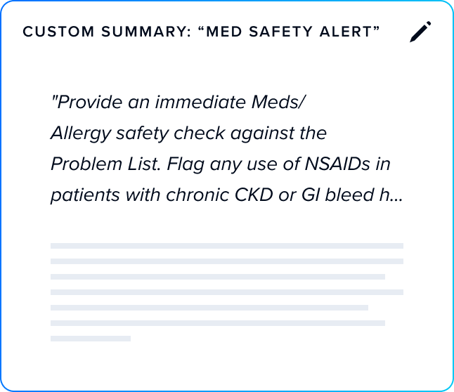 Empower clinicians to customize summaries and insights to exactly fit their workflows. No builder required.